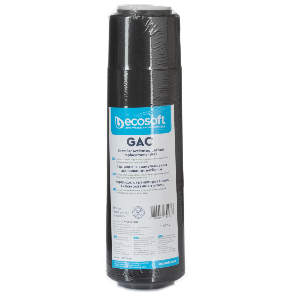 Ecosoft GAC (CHV2510ECO) - вугільний картридж для очищення води у фільтрі зворотного осмосу або проточному фільтрі. Містить високоякісне гранульоване активоване вугілля зі шкаралупи кокосових горіхів.